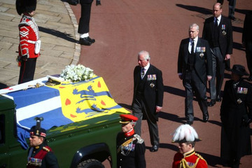 Members of the Royal Family follow the hearse, a specially modified Land Rover, during the funeral of Britain’s Prince Philip, husband of Queen Elizabeth, who died at the age of 99, on the grounds of Windsor Castle in Windsor, Britain, April 17, 2021. REUTERS/Hannah McKay/Pool