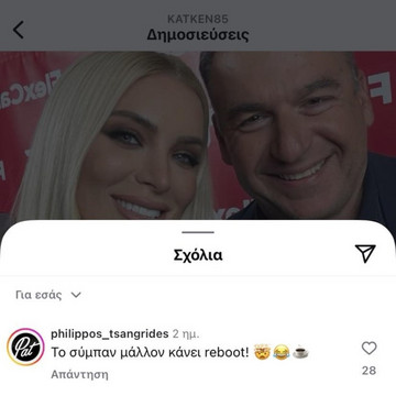 “Το σύμπαν μάλλον κάνει reboot!” έγραψε ο Φίλιππος Τσαγκρίδης κάτω από τη φωτογραφία της Κατερίνας Καινούργιου, δίχως να λαμβάνει απάντηση.