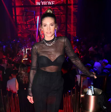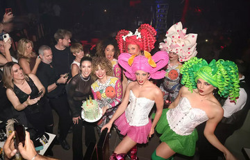 Η ηθοποιός πλημμυρισμένη από ευτυχία έσβησε τα κεράκια της στην εντυπωσιακή τούρτα που της ετοίμασαν οι φίλοι της. Πιο εκθαμβωτική από ποτέ η ηθοποιός πόνταρε σε ένα total black look με see through φανέλα με στρας και bra top από μέσα, τα οποία συνδύασε με ψηλόμεσο παντελόνι με σκισίματα στο τελείωμα.