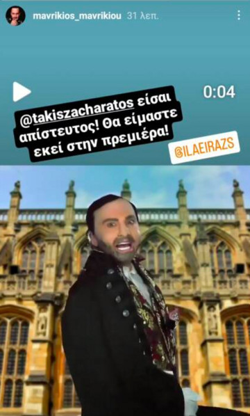 Ο Μαυρίκιος Μαυρικίου λοιπόν δεν δίστασε να απαντήσει με τον δικό του τρόπο, στον Τάκη Ζαχαράτο, αναρτώντας ένα story στο οποίο δείχνει ξεκάθαρα πως εκτιμάει την σάτιρα του γνωστού κωμικού. Αφού, όπως έγραψε στο story του θα βρίσκεται και αυτός στην πρεμιέρα.