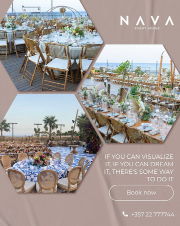 Ο πιο σύγχρονος και καλοκαιρινός χώρος για τη διοργάνωση κοινωνικών και εταιρικών εκδηλώσεων, ανοίγει τις πόρτες του και σας υποδέχεται εκεί όπου η πολυτέλεια συναντά την αυθεντική κυπριακή φιλοξενία: στο NAVA Seaside Event Venue, στην παραλιακή περιοχή της Περνέρα στον Πρωταρά.