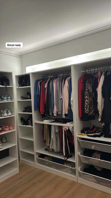 Το μοντέλο πόζαρε στο δωμάτιο-ντουλάπα του νέου της διαμερίσματος και μας έδειξε κάποιες από τις αγαπημένες της γωνίες.
