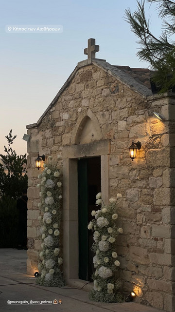 Το μυστήριο τελέστηκε σε ένα ξωκλήσι και συγκεκριμένα στον υπαίθριο χώρο του, που σε συνδυασμό με τη δύση του ήλιου, το όλο σκηνικό απέπνεε περισσότερο ρομαντισμό.