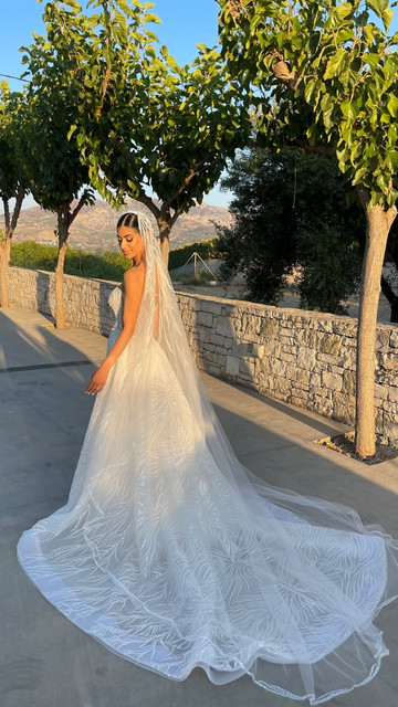 Ο γάμος, πραγματοποιήθηκε στο Ηράκλειο της Κρήτης σε ένα απίστευτα ρομαντικό σκηνικό, με τη νύφη να λάμπει μέσα στο παραμυθένιο νυφικό, που αποτελεί δημιουργία της ταλαντούχας Κύπριας σχεδιάστριας Στάλως Θεοδώρου. Στράπλες, σε στενή γραμμή, με ασημένιες λεπτομέρειες και ένα πέπλο με αστραφτερά μοτίβα σύνθεσαν το τέλειο bridal look για τη Βάσω Πέτρου, η οποία έδειχνε πιο ευτυχισμένη από ποτέ!