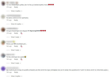 Πιο συγκεκριμένα, κάποια από τα σχόλια κάτω από την ανάρτηση, ήταν τα εξής: «Για τον Αλεξάνδρου μιλάει; Δεν το λέω με κακία», «Ας ήσουν ικανή να τον κρατήσεις», «Ανοιχτό δικαστήριο και σήμερα», «Κάνεις για 100 κουκλάρα μου», «Το λέει απότομα και ωραία», «Βρε Ιωάννα μου σε έχω σε μεγάλη εκτίμηση για όλα αυτά που έχεις καταφέρει και για το αγόρι που μεγαλώνετε! Γιατί το κάνεις αυτός τις τελευταίες ημέρες;».