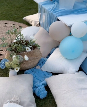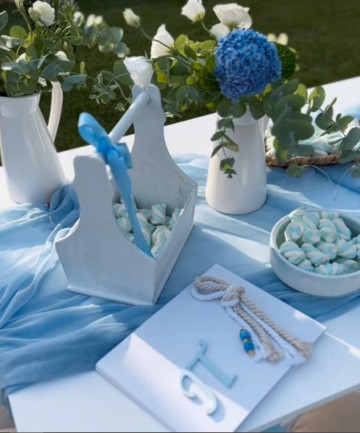 Το πάρτι που ακολούθησε μετά την τελετή της βάπτισης ήταν ξέφρενο, με λαμπερούς καλεσμένους και τη διακόσμηση να κλέβει τις εντυπώσεις. Το γαλάζιο και το λευκό ήταν οι αποχρώσεις που επικρατούσαν στη διακόσμηση του χώρου, ενώ η μπομπονιέρα της βάφτισης ήταν ένα αρωματικό κερί με το όνομα του νεοφώτιστου.