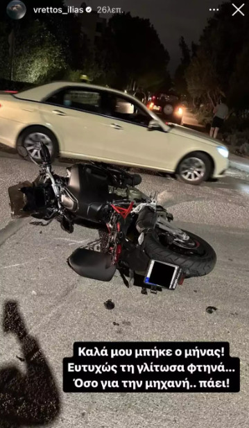 «Καλά μου μπήκε ο μήνας! Ευτυχώς τη γλίτωσα φτηνά. Όσο για τη μηχανή πάει», έγραψε ο Ηλίας Βρεττός.