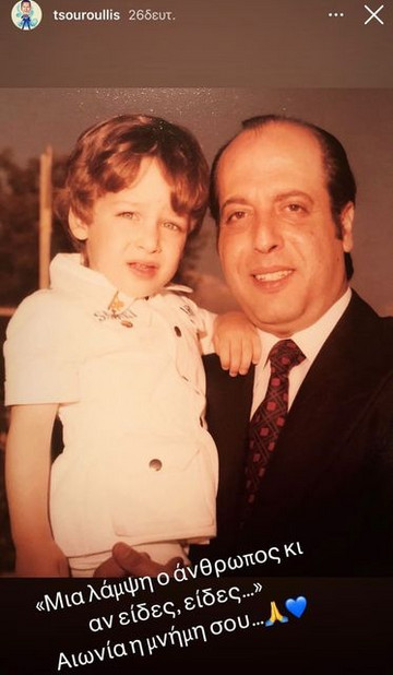 O Χρύσανθος Τσουρούλης, με μια φωτογραφία στην οποία απεικονίζεται ο ίδιος στην αγκαλιά του πατέρα του, θέλησε να τιμήσει την μνήμη του πατέρα του ο οποίος έφυγε από τη ζωή δώδεκα χρόνια πριν.