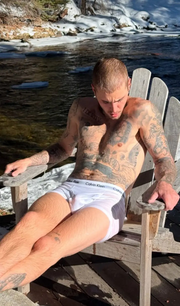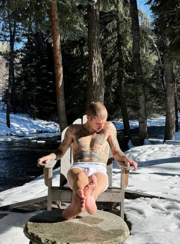 Στον προσωπικό του λογαριασμό στο Instagram, ο Τζάστιν ανάρτησε μια σειρά από φωτογραφίες, όπου ποζάρει σε μια ξύλινη καρέκλα φορώντας μόνο το εσώρουχό του. Ο παγωμένος τόπος γύρω του δημιουργεί μια εντυπωσιακή αντίθεση, καθώς το χιόνι καλύπτει το τοπίο και δίπλα του περνάει ένα ποτάμι.