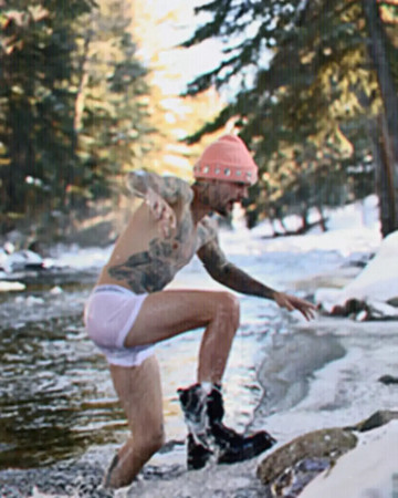 Σε άλλο του story, ο τραγουδιστής φαίνεται να βγαίνει από το ποτάμι, βρεγμένος και ημίγυμνος, αποδεικνύοντας την εντυπωσιακή του αντοχή στις χαμηλές θερμοκρασίες.
