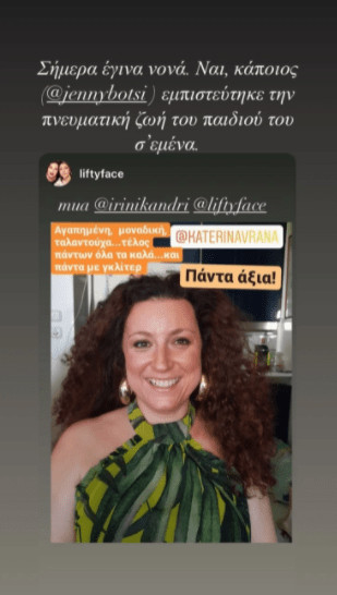 Μάλιστα, η χαρούμενη μανούλα μοιράστηκε κάποια “κλικς” με τον στολισμό και την κολυμπήθρα της νεοφώτιστης. Η κόρης της είχε δύο νονές, μία εκ των οποίων είναι η Κατερίνα Βρανά, η οποία εξέφρασε τη χαρά της γράφοντας: «Σήμερα έγινα νονά! Ναι, κάποιος εμπιστεύτηκε την πνευματική ζωή του παιδιού του σε εμένα».