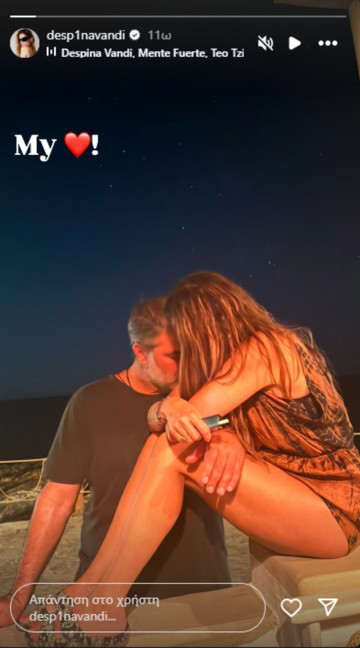 Η Δέσποινα Βανδή δημοσίευσε στον προσωπικό της λογαριασμό στο Instagram μια τρυφερή φωτογραφία με τον Βασίλη Μπισμπίκη, τους δύο τους καθισμένους μαζί σε ένα πεζούλι, με την τραγουδίστρια να γράφει πάνω στην εικόνα: «Ο Βαλεντίνος μου».