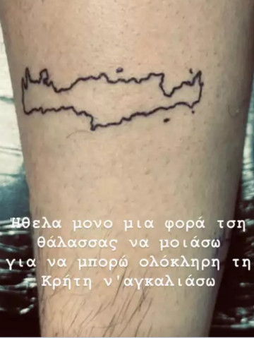 «Ήθελα μόνο μια φορά τση θάλασσα να μοιάσω για να μπορώ ολόκληρη την Κρήτη ν’ αγκαλιάσω», έγραψε ο Βασίλης Μπισμπίκης αποκαλύπτοντας το νέο του τατουάζ.