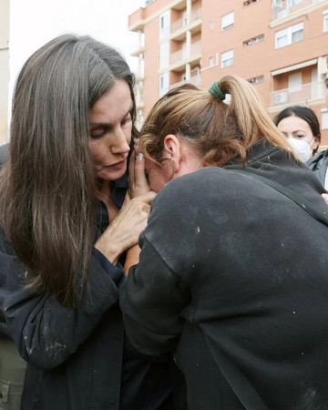 Η στάση τους εκθειάστηκε στα social media, αν και ήταν μια δύσκολη στιγμή από το Στέμμα. Η Λετίθια επέλεξε μία φωτογραφία από την Βαλένθια στις αγαπημένες της για το 2024. Μια άκρως συναισθηματική φωτογραφία, με τη βασίλισσα με λασπωμένα χέρια και πρόσωπο να αγκαλιάζει ένα θύμα.