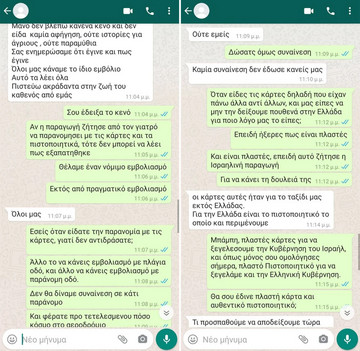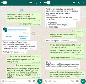 «Ωστόσο όταν παραλάβαμε τις εν λόγω κάρτες εμβολιασμού στο αεροδρόμιο «Ελευθέριος Βενιζέλος» (και δη κατά την έξοδό μας από την πύλη αναχώρησης της πτήσης μας και έχοντας ήδη παραδώσει τις αποσκευές μας), μας ανέμενε νέα έκπληξη, αφού διαπιστώσαμε ότι αναγράφονταν αναληθή στοιχεία. Συγκεκριμένα, στις εν λόγω κάρτες εμβολιασμού-που φέρονταν να έχουν εκδοθεί από την Κυπριακή Δημοκρατία και ο εμβολιασμός μας να έχει διενεργηθεί από κάποιον Κύπριο ιατρό επ’ ονόματι Δρ. Γεώργιο Χριστοδουλίδη, Γενικό Παθολόγο-, οι ημερομηνίες εμβολιασμού που αναγράφονταν ήταν διαφορετικές από τις πραγματικές (ήτοι 11-4-2021 ως ημερομηνία της πρώτης δόσης, αντί της πραγματικής ημερομηνίας 13-4-2021 και αντίστοιχα η δεύτερη δόση την 1-5-2021, αντί της πραγματικής ημερομηνίας 4-5-2021), ο δε τόπος διενέργειας του εμβολιασμού φερόταν το «MEGA EMVOLIASTIKO KENTRO ELLINIKON ATHINA»!».