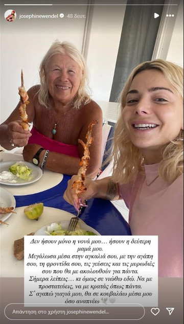 Το μεσημέρι της Τετάρτης 3/09 η Ζόζεφιν μέσα από μια ανάρτηση στον προσωπικό της λογαριασμό στο Instagram θέλησε να αποχαιρετήσει τη γιαγιά της και νονά της.