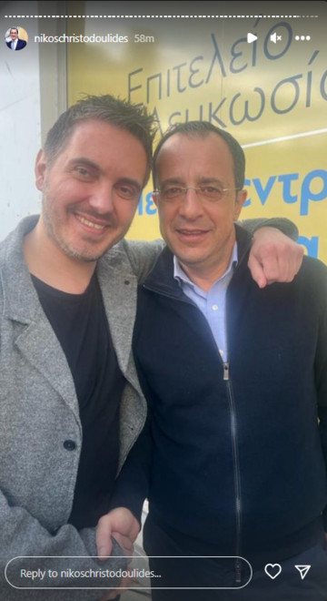 “Mε όλο το σεβασμό στους υπόλοιπους υποψήφιους τους οποίους και γνωρίζω και σέβομαι και εκτιμώ, εγώ στηρίζω τον Νίκο Χριστοδουλίδη, γιατί τον Νίκο τον γνωρίζω 25 χρόνια, πριν ασχοληθεί με την πολιτική, όταν έκανε την διπλωματική του διατριβή στην Αθήνα το ’98, ΄όπου εγώ έπαιζα με τον Χατζηνάσιο. Αυτή είναι η γνωριμία. Του λέω επειδή είμαστε δυο νεόκοπη μέσα στην Αθήνα, να βρισκόμαστε να τα λέμε, και έτσι γνωριστήκαμε. Αυτή η γνωριμία, έγινε μια δυνατή φιλία, ειλικρινής, ανιδιοτελής”.