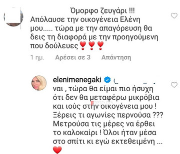 Η Ελένη Μενεγάκη απάντησε σε σχόλιο μιας από των followers της στο Instagram που της έγραψε για το δεύτερο lockdown και η παρουσιάστρια απάντησε ανάλογα.