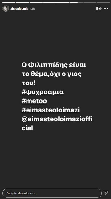 “Ο Φιλιππίδης είναι το θέμα, όχι ο γιος του”, έγραψε χαρακτηριστικά ο Αλέξανδρος Μπουρδούμης.