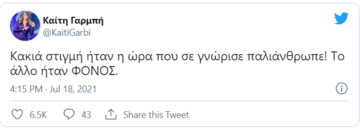 «Κακιά στιγμή ήταν η ώρα που σε γνώρισε παλιάνθρωπε! Το άλλο ήταν ΦΟΝΟΣ», έγραψε η Καίτη Γαρμπή.