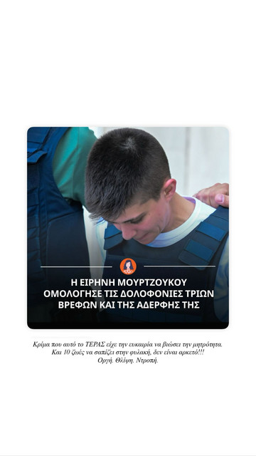 Η ίδια, εμφανώς συγκλονισμένη, ανέβασε φωτογραφία της Μουρτζούκου τη στιγμή της σύλληψής της, συνοδεύοντάς την με μια αγανακτισμένη δήλωση: «Κρίμα που αυτό το τέρας είχε την ευκαιρία να βιώσει τη μητρότητα! Και 10 ζωές να σαπίζει στη φυλακή, δεν είναι αρκετό!!! Οργή. Θλίψη. Ντροπή.»