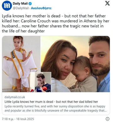 Για ζωή της μικρής Λυδίας, της κόρης της Καρολάιν Κράουτς που δολοφόνησε ο σύζυγός της, Μπάμπης Αναγνωστόπουλος στις 11 Μαΐου 2021, στο σπίτι τους στα Γλυκά Νερά μίλησε ο παππούς του παιδιού και πατέρας της αδικοχαμένης γυναίκας στην Daily Mail.