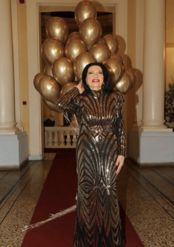 Ντυμένη με μια χρυσή τουαλέτα, η τραγουδίστρια και ηθοποιός διασκέδασε και φωτογραφήθηκε με τα αγαπημένα της πρόσωπα. Η διακόσμηση στον χώρο αποτελούταν από χρυσά μπαλόνια, ενώ οι δύο τούρτες που της είχαν ετοιμάσει, ήταν εμπνευσμένες από μία εμβληματική της εμφάνιση στον ελληνικό κινηματογράφο.