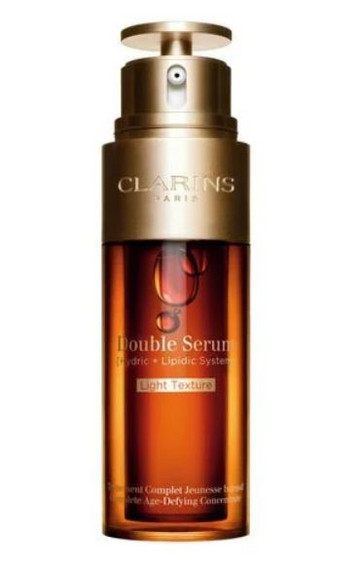 To εμβληματικό Double Serum της Clarins έχει μια ελαφριά, ανεπαίσθητη υφή που στοχεύει στην πρόληψη της εμφάνισης των σημαδιών της γήρανσης. Η διπλή φόρμουλα του συνδυάζει 21 ισχυρά φυτικά εκχυλίσματα που βοηθούν στην ενίσχυση των 5 ζωτικών λειτουργιών του δέρματος – ανάπλαση, θρέψη, οξυγόνωση, ενυδάτωση, προστασία -τα οποία δρουν στα σημάδια γήρανσης. Μετά την εφαρμογή του αφήνει στο δέρμα ένα απολαυστικό άρωμα από φρουτώδεις, λουλουδένιες, νότες.