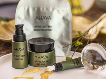 Συλλογή pRetinol™ by AHAVA Trio Best που συμπεριλαμβάνει Κρέμα Ημέρας, Eye Cream και Serum, την περιβόητη 24k Gold Mask καθώς και OSMOTER™ Concentrate Eye mask, OSMOTER™ Concentrate eye serum.