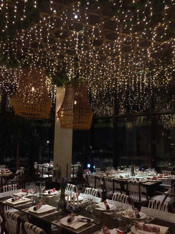 Mία σάλα που ίπταται λες πάνω από τη φωταγωγημένη πόλη, η γιορτινή Ακρόπολη σε πρώτο πλάνο, ο χριστουγεννιάτικος διάκοσμος στα πιο κομψά του και ένα μενού που θυμίζει γαστρονομική υπερπαραγωγή Μητρόπολης του κόσμου…