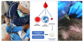 Το PRP (Platelet Rich Plasma ή Πλάσμα Πλούσιο σε Αιμοπετάλια) παρασκευάζεται από το αίμα του ίδιου του ασθενούς. Τα αιμοπετάλια αποτελούν ένα από τα τρία κυτταρικά στοιχεία του αίματος (τα άλλα είναι τα ερυθρά και τα λευκά αιμοσφαίρια). Περιέχουν πολύτιμες ουσίες (αυξητικούς παράγοντες) που όταν απελευθερωθούν βοηθούν στον πολλαπλασιασμό των κυττάρων και στην τοπική αναγέννηση των μαλλιών. Η θεραπεία γίνεται ως ακολούθως: Αφού ληφθεί λίγο αίμα από τον ασθενή στη συνέχεια τοποθετείται σε μια φυγόκεντρο (μια μηχανή που περιστρέφεται με υψηλή ταχύτητα) για να διαχωρίσει τους διαφορετικούς τύπους κυττάρων αίματος και να παραχθεί το πλάσμα πλούσιο σε αιμοπετάλια. Ακολούθως ενεργοποιούνται τα αιμοπετάλια και τοποθετούνται στα σημεία που χρειάζονται. Ένα σημαντικό πλεονέκτημα αυτής της θεραπείας είναι ότι είναι αυτόλογη, δηλαδή χρησιμοποιούμε τους αυξητικούς παράγοντες του ίδιου του ασθενούς από το αίμα του και έτσι δεν υπάρχει κίνδυνος μετάδοσης ασθένειας.
