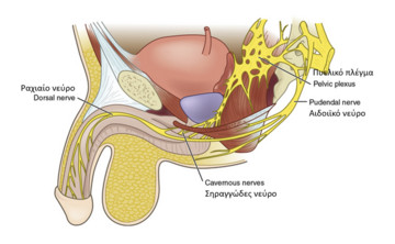 Προσαρμοσμένο από https://www.santishealth.org/prostate–cancer–information–centre/taking–viagra–before–a–prostatectomy/cavernosal–nerves–penis–prostate/