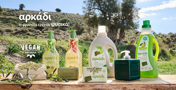 Τα αγνά, φυσικά σαπούνια Αρκάδι είναι φτιαγμένα με την ίδια αυθεντική συνταγή από το 1946. Με όλες τις ευεργετικές ιδιότητες του ελαιόλαδου, αποτελούν τον πολυτιμότερο σύμμαχο στην καθημερινή καθαριότητα, ενώ είναι 100% κατάλληλα για vegans. Επιπλέον, τα υγρά κρεμοσάπουνα με πράσινο και λευκό σαπούνι είναι ιδανικά για την υγιεινή φροντίδα των χεριών, με δερματολογικά ελεγμένες φόρμουλες, ενώ διαθέτουν συσκευασίες που προάγουν τη βιωσιμότητα, καθώς κατασκευάζονται από ανακυκλωμένα αλιευτικά και γεωργικά δίχτυα κατά τουλάχιστον 30%.