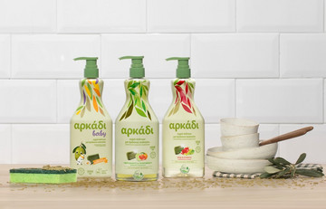 - Το Αρκάδι εστιάζει έμπρακτα στο σεβασμό προς τη φύση και το περιβάλλον, μειώνοντας το περιβαλλοντικό του αποτύπωμα, καθώς η συσκευασία των απορρυπαντικών προέρχεται από ανακυκλωμένα γεωργικά δίχτυα τουλάχιστον κατά 30%, ενώ, τα υγρά πιάτων έρχονται σε πρακτικές επαναγεμιζόμενες αντλίες, συνοδευόμενες από ανταλλακτικά σακουλάκια με 80% λιγότερο πλαστικό.
