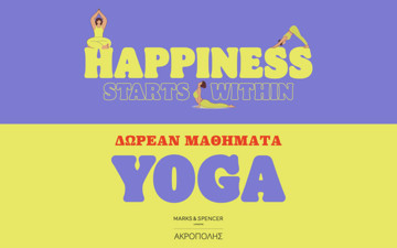 Σε αυτό το πλαίσιο και με σλόγκαν το “Happiness starts within!”, το Marks & Spencer (M&S) στη Λευκωσία καλεί τις γυναίκες κάθε ηλικίας να ζήσουν την απόλυτη εμπειρία του well being & healthy living, μέσα από μια ξεχωριστή ενέργεια αφού από την Τετάρτη 19 Οκτωβρίου στο M&S στην Ακρόπολη διοργανώνει δωρεάν μαθήματα yoga.
