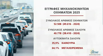 Συγκριτικά με το 2024, το 2025, καταγράφηκε αύξηση στις εγγραφές οχημάτων, σύμφωνα με τα στοιχεία της Στατιστικής Υπηρεσίας με την βασική αύξηση να αφορά τα εισαγόμενα μεταχειρισμένα οχήματα.