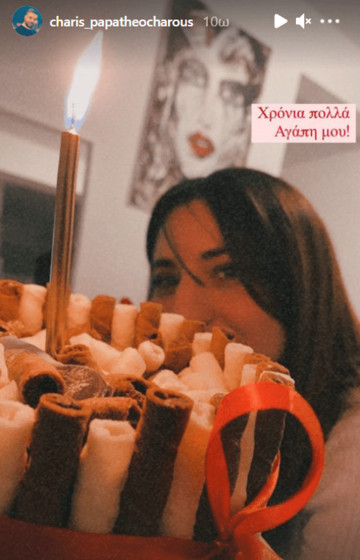 Στο στιγμιότυπο που μοιράστηκε ο Χάρης, βλέπουμε την τούρτα και πίσω την Θεογνωσία με χαμόγελο στα χείλη της. Επίσης, νεαρός δημοσιογράφος έγραψε στη φωτογραφία “Χρόνια Πολλά αγάπη μου”.
