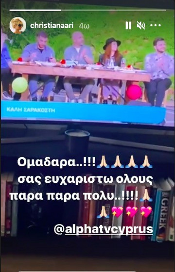 Μάλιστα η Χριστιάνα μοιράστηκε με τους διαδικτυακούς της φίλους στο Instagram ότι παρ’ όλο που δεν βρίσκεται εκεί παρακολουθεί με περηφάνια τους συνεργάτες της. Στη φωτογραφία έγραψε: “Ομαδάρα… σας ευχαριστώ όλους πάρα πολύ”