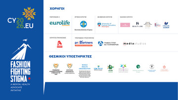 Το Fashion Fighting Stigma παρουσιάζει η Eurolife, Χρυσός Χορηγός η Αρχή Ηλεκτρισμού Κύπρου, Ασημένιος Xορηγός το UCLan Cyprus, Χορηγός Επικοινωνίας ο Άλφα Κύπρου.