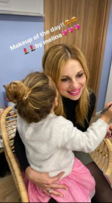 Μεγάλη της αδυναμία, η κορούλα της, Μελίνα, η οποία σε μια μικρή βόλτα μετά το σχολείο πέρασε από το κανάλι που εργάζεται η παρουσιάστρια για να της δώσει ένα τρυφερό φιλί αλλά και να την προετοιμάσει για την εκπομπή, βάφοντας της και κάνοντας την επιμέλεια του μακιγιάζ της, όπως συνηθίζει.