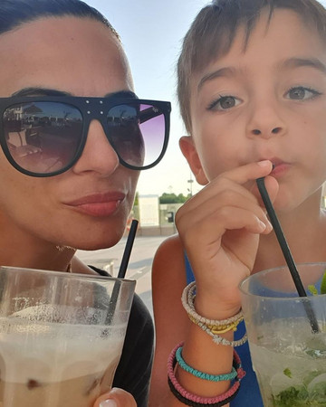 Μαμά και γιος πίνοντας καφέ και λεμονάδα αντίστοιχα, ποζάρουν στο φακό και μας δείχνουν ένα από τα πιο γλυκά στιγμιότυπα τους από το καλοκαίρι της. Ο πανέμορφος μικρός της γιος κλέβει τις εντυπώσεις και μας εγείρει ερωτηματικά, αν μοιάζει στην μανούλα του.