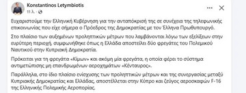 Στο μεταξύ ο κύριος Λετυμπιώτης επιβεβαίωσε τις πληροφορίες για αποστολή δύο φρεγάτων και δύο μαχητικών αεροσκαφών F-16 από την Ελλάδα, στην Κύπρο.