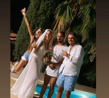 Ο λόγος για την Ανδρεάνα Φραγκούδη και τον σύντροφό της Πάνα Δημητριάδη, οι οποίοι αποφάσισαν να κάνουν ένα διαφορετικό γαμήλιο πάρτι στην πισίνα με φίλους και συγγενείς. Με ένα πέπλο αλλά και με ένα αλλιώτικο “γάμο”, γιόρτασαν και αντάλλαξαν με χιούμορ όρκους αιώνιας ζωής.