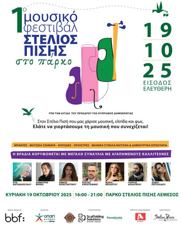 Η Λεμεσός ετοιμάζεται να φιλοξενήσει το «1ο Μουσικό Φεστιβάλ Στέλιος Πισής στο Πάρκο», την Κυριακή 19 Οκτωβρίου 2025, από τις 16:00 έως τις 21:00, στο «Πάρκο Στέλιος Πισής», ένα χρόνο ακριβώς από την απώλεια του μεγάλου συνθέτη. Η εκδήλωση πραγματοποιείται υπό την αιγίδα του Προέδρου της Κυπριακής Δημοκρατίας και διοργανώνεται από το Stelios Pissis Music Foundation, με στόχο να τιμήσει τον σπουδαίο δημιουργό που χάρισε σε όλους μας μουσική, ελπίδα και φως.