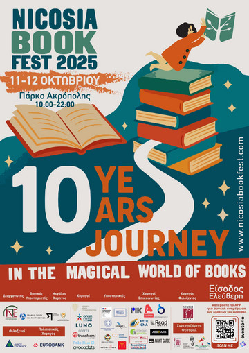 Σε έναν μήνα ακριβώς, από τις 10 έως τις 12 Οκτωβρίου, το Nicosia Book Fest 2025 ανοίγει τις πύλες του στο Πάρκο Ακρόπολης και προσκαλεί όλους τους φίλους του βιβλίου να γιορτάσουμε μαζί τα 10 χρόνια του φεστιβάλ.