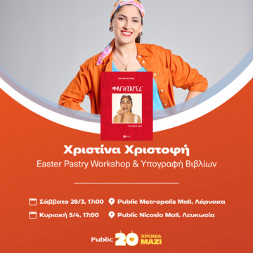 Τα Public φέρνουν τη γεύση και τη δημιουργικότητα του Πάσχα πιο κοντά στο κοινό, μέσα από δύο ξεχωριστές εκδηλώσεις που θα πραγματοποιηθούν με την αγαπημένη σεφ Χριστίνα Χριστοφή.