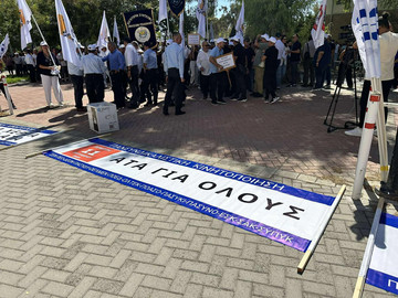 Έχουν ξεδιπλωθεί τα πανό κι έχουν στηθεί τα λάβαρα όπου άρχισε να μαζεύεται κόσμος έξω από το Υπουργείο Οικονομικών στη Λευκωσία για τη συγκέντρωση διαμαρτυρίας που είναι προγραμματισμένη για τις 12:00.