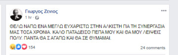 “Θέλω να πω ένα μεγάλο ευχαριστώ στην Άλκηστις για τη συνεργασία μας τόσα χρόνια. Καλό Παράδεισο Πέπα μου και θα μου λείψεις πολύ πάντα θα σ’ αγαπώ και θα σε θυμάμαι”
