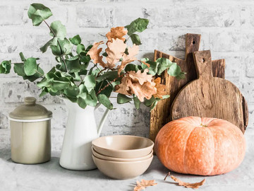 Αρκεί να παίξεις με τις υφές, το φως, τα σκεύη, τα χρώματα και τα διακοσμητικά που θυμίζουν τη σοδειά της εποχής.