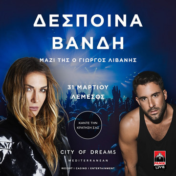 Ζήστε μια μοναδική βραδιά γεμάτη λάμψη και διασκέδαση. Για πληροφορίες και κρατήσεις: +357 25 088888 ή στο Despina Vandi Concert .